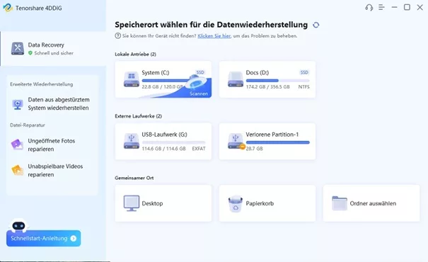 Mit 4DDiG können Sie Daten nach dem 0x80072F8F-Fehler einfach wiederherstellen, indem Sie folgende Schritte ausführen: